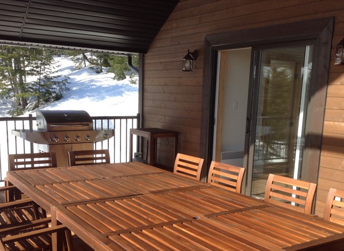 La terrasse belvédère couverte, équipée d’un BBQ, de tables et chaises en bois d’acacia, vous permet de profiter plus longuement de la belle saison.