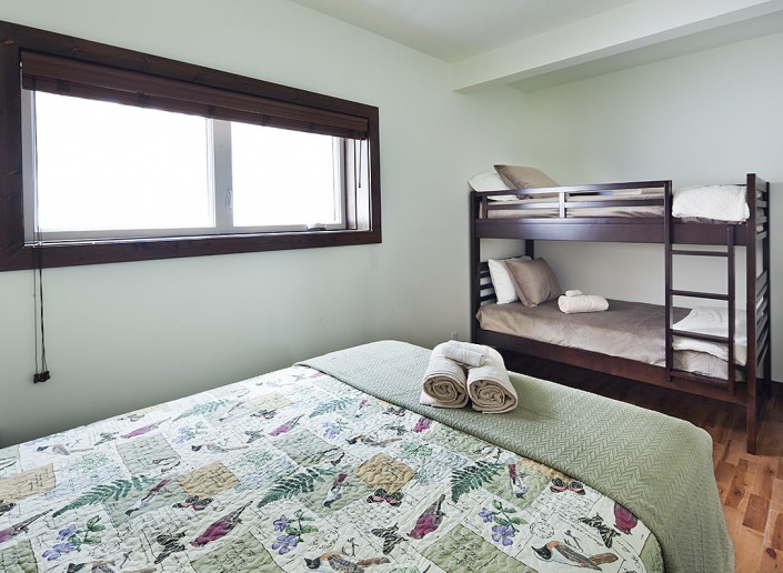Le Mirador 3, compte 5 chambres avec lits queen, dont 3 ont en plus 2 lits simples superposés et une avec en plus 2 lits simples. La literie est entièrement comprise.