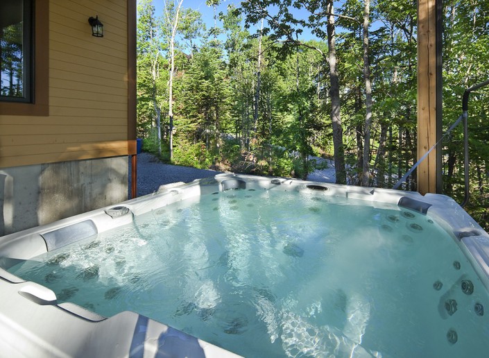 Le spa extérieur 4 saisons, protégé par la grande terrasse, offre des moments de détente peu importe les intempéries.